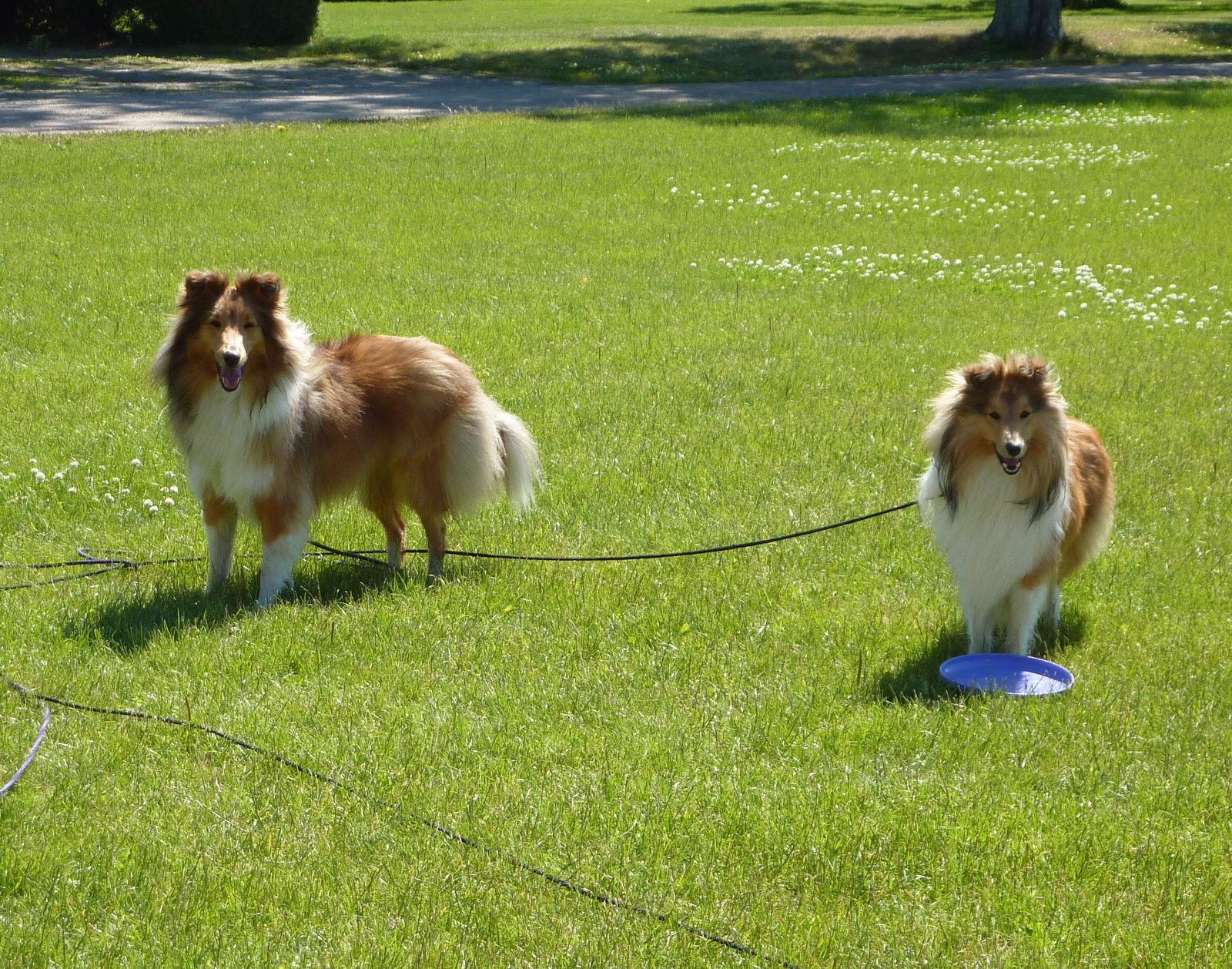 Grundlydnad Sen blev det lite glass och hundarna avnjöt varsitt hundben.Solen gick sakta ner, men bara sakta. Var så sköna solstrålar kvar.Jag valde sen att träna lite med hundarna.Wilmer var mkt duktig och visade allt han kan, men även NYA trick!Han imponerar många då han tränas på "appelplan" och sånt faktiskt.Där är han väldigt redig och bra!