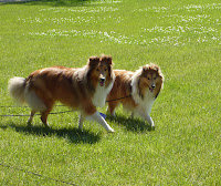Häromdan på en promenad så försökte jag momentet att "rulla runt" igen.Han lyckades faktiskt rätt så bra för första gången.Att hålla en godis framför nosen och styra runt kroppen gick bättre också.MEN IDAG!!! Han rullade helt själv!!!Jag provade att utföra det hela 2, 3 och 4 ggr för att se att det sitteroch han upprepade det, han rullade runt utan hjälp från mig!!!Åh så glad jag blir!!! Det blev massa beröm, godis och massa bus också!Han blev så stolt han också! Tänk, att för några få månader sen bara, så hade han total ångest i detta,men nu klarar han att rulla själv och han verkade ha kul äntligen!