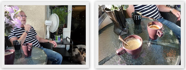 Han har en sån Tassimo kaffe maskin, så vi tog kaffe också.