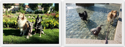 Så pass varmt att vi fick svalka hundarna i fontänen mitt i Söderköping.