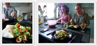 Vi skulle äta kycklingfyllda tortillas, med sallad också då.