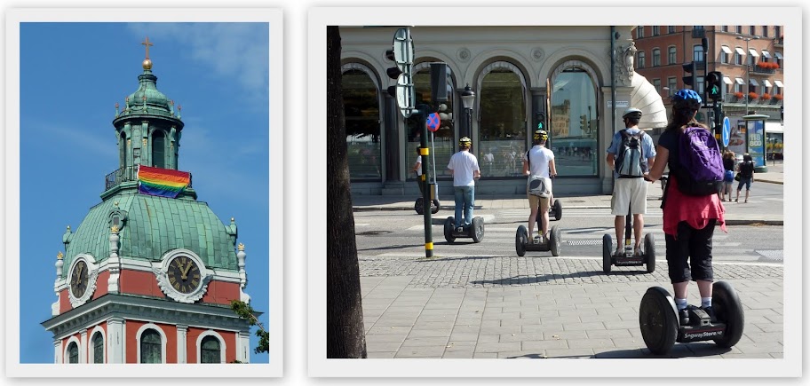 Vi fortsatte att gå mot Strandvägen. Mysigt, trevligt och skönt!Väldigt många som åker segways såg vi överallt.Det har ju funnits i Norrköping ett litet tag också, men inte sett några.Här i Stockholm däremot känns det lika vanligt som att cykla typ.Många båtar, även äldre och fina, stod intill kajen vid Strandvägen.Färjorna gick även där hela tiden. Sightseeing och sånt. Även diverse båtar då.Mysiga uteserveringar intill vattnet också.Man kunde även se Gröna Lund på andra sidan vattnet.En parad började plötsligt att gå förbi oss också.Två hästar i fram och sen orkester och grejer bakom.